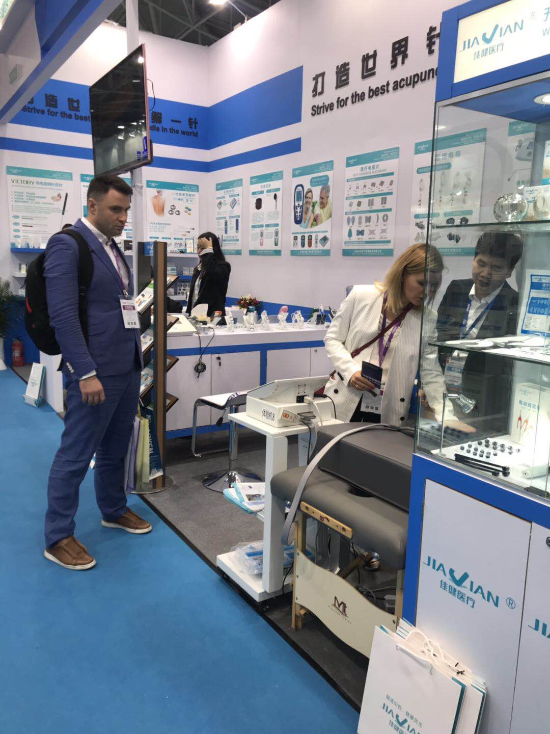 In this exhibition, Jiajian Medical has two exhibition halls, S1 acupuncture and moxibustion Hall and S6 Rehabilitation Hall. During the exhibition, our company carried traditional acupuncture and moxibustion instruments; Basic; Electrode rod; ultrasonic; Multiple products such as Stimawell have been unveiled. Among them, Stimawell, as our company's key display product, adopts a real-life experience mode to personally experience the therapeutic effect in the most intuitive way, and has received recognition from many customers.