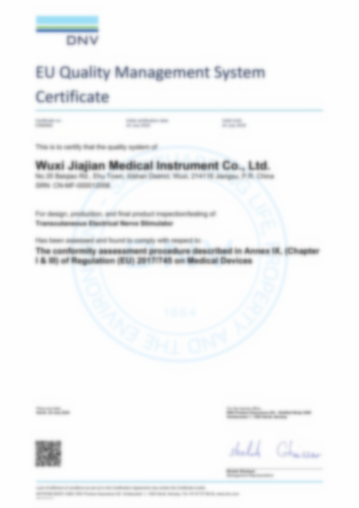 On July 24, 2025, Jiajian Medical's low-frequency electronic pulse therapeutic device successfully passed the certification audit of the EU Medical Device Regulation (MDR) and obtained the MDR certificate. This milestone achievement not only signifies that the company's products meet the EU standards in terms of safety, effectiveness, and compliance, but also underscores the company's leapfrog improvement in competitiveness in the global medical device market, injecting strong momentum into its expansion into international markets.