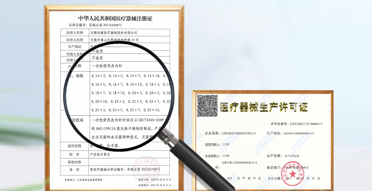品牌:佳健 產(chǎn)地:江蘇省無錫市 生產(chǎn)企業(yè):無錫佳健醫(yī)療器械股份有限公司 注冊證編號:蘇械注準(zhǔn)20152200875 醫(yī)療器械產(chǎn)品名稱:一次性使用皮內(nèi)針